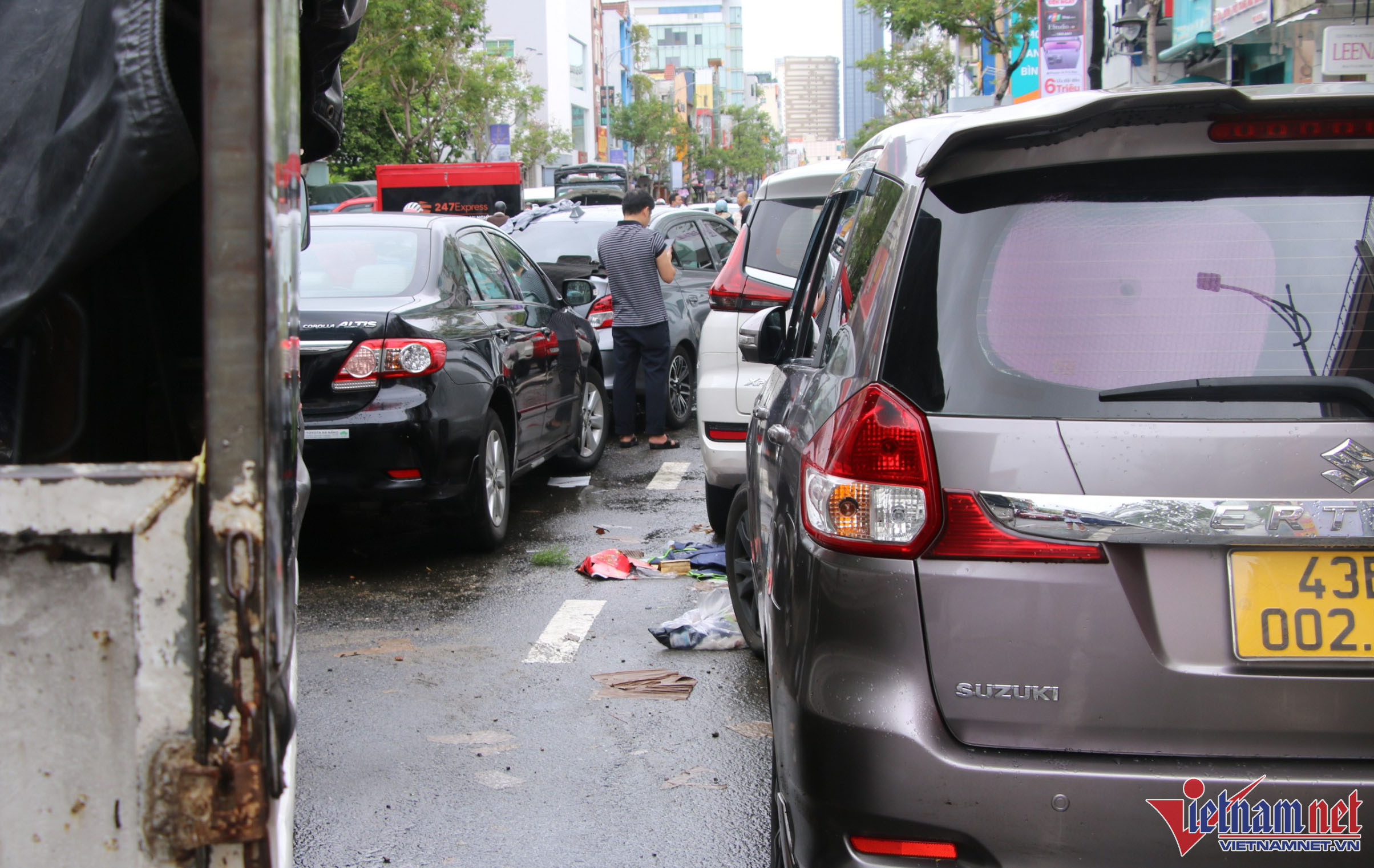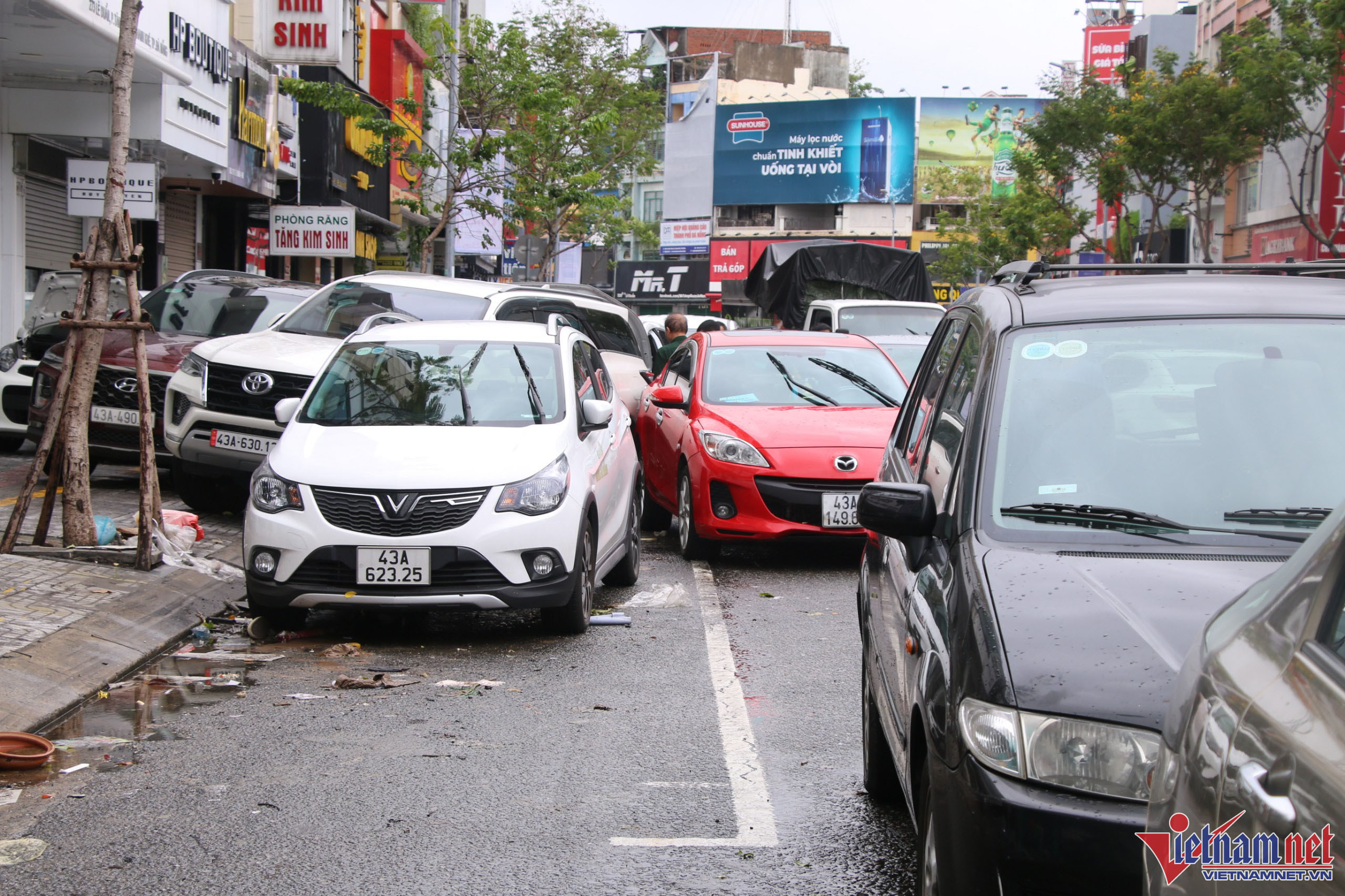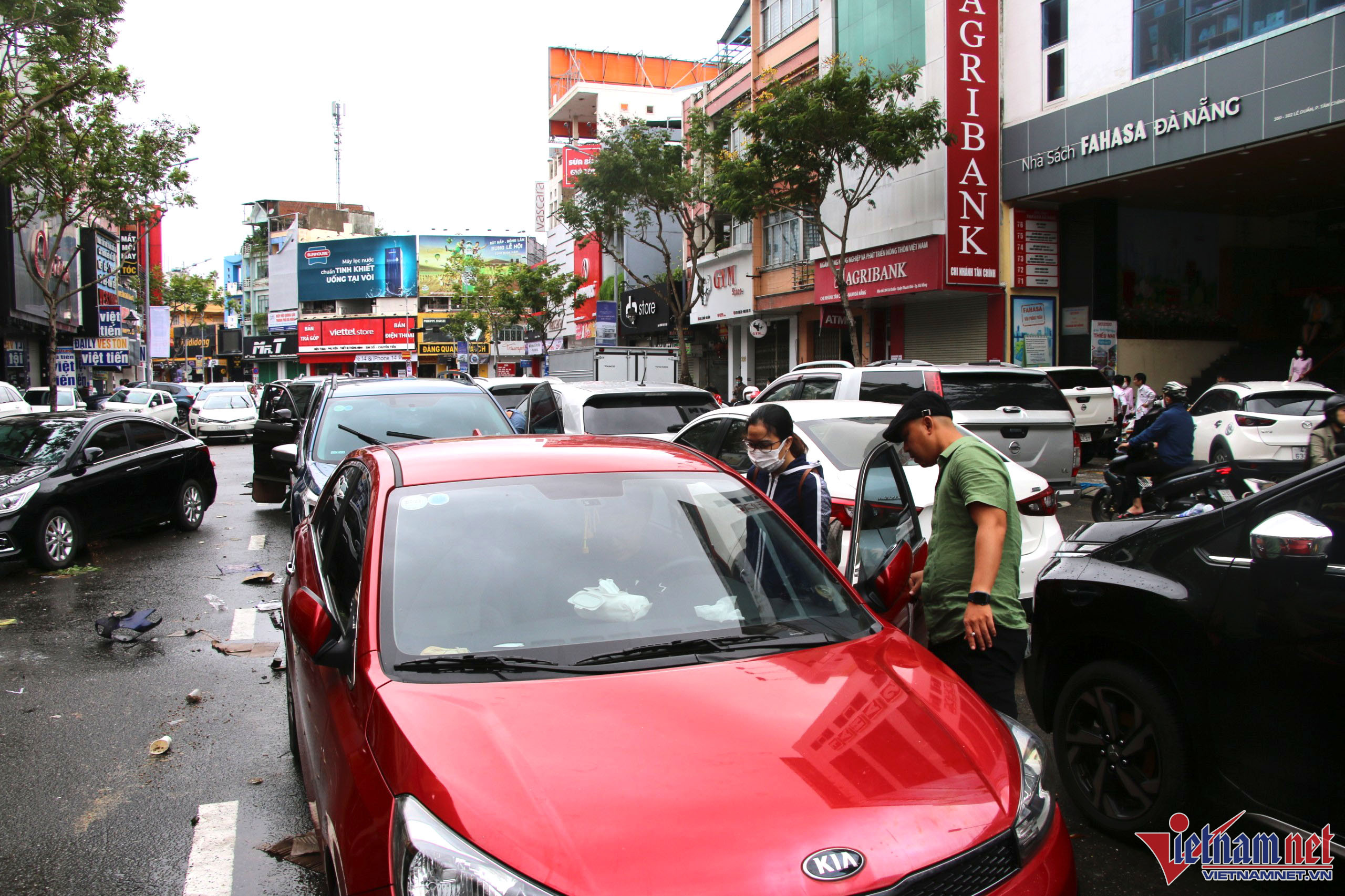 Hàng trăm ô tô chết máy nằm la liệt trên đường phố ở Đà Nẵng sau lũ, xe cứu hộ liên tục được huy động để đưa ô tô đến gara.