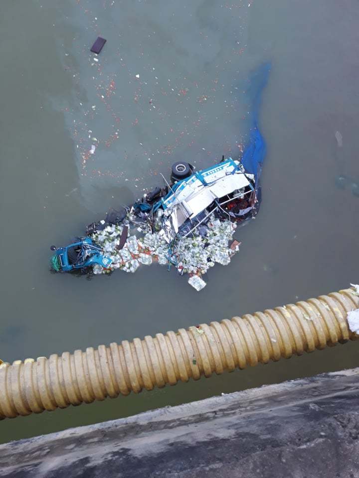 Khám nghiệm hiện trường, cơ quan chức năng xác định nguyên nhân ban đầu là ô tô này tự đâm, bay xuống sông.