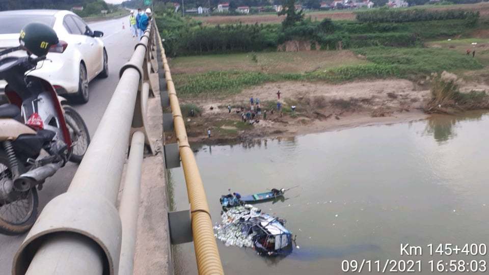 Nguồn tin từ Đơn vị khai thác vận hành cao tốc Nội Bài - Lào Cai cho VietNamNet biết, vào lúc 16h10 ngày 9/11, tại km 145 + 400 (cầu Ngòi Thia), xe tải thùng chở rau củ quả BKS 24H - 00220 do lái xe Nguyễn Việt Dũng điều khiển theo hướng từ Lào Cai- Nội Bài bất ngờ đâm tung hộ lan rồi lao xuống sông Ngòi Thia (thuộc địa bàn huyện Văn Yên, tỉnh Yên Bái).