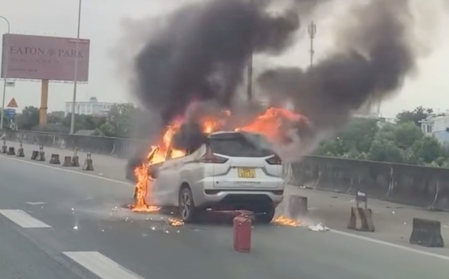 Qua khỏi nút giao Võ Chí Công khoảng 100m (TP Thủ Đức), tài xế phát hiện ô tô bốc khói nên nhanh chóng tấp vào làn đường khẩn cấp để kiểm tra. Ít phút sau, ngọn lửa bùng phát dữ dội rồi bao trùm ô tô.