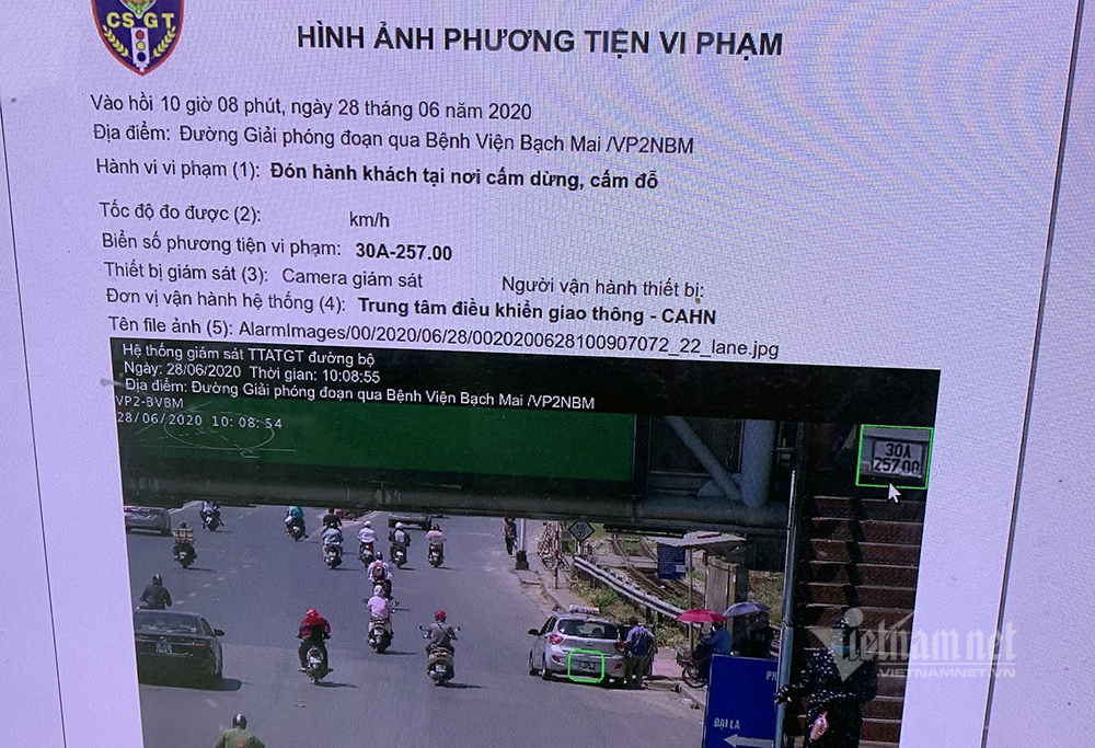 Làm việc với đội chỉ huy điều khiển đèn tín hiệu giao thông công an TP Hà Nội về trường hợp anh Hòa, Thiếu tá Lý Thị Thu Trang - Phó đội trưởng cho biết, qua công tác tra soát dữ liệu, ngày 28/6, ô tô mang BKS 30A-257.00 đón khách tại nơi cấm dừng, cấm đỗ trên đường Giải Phóng, trước cửa Bệnh viện Bạch Mai.