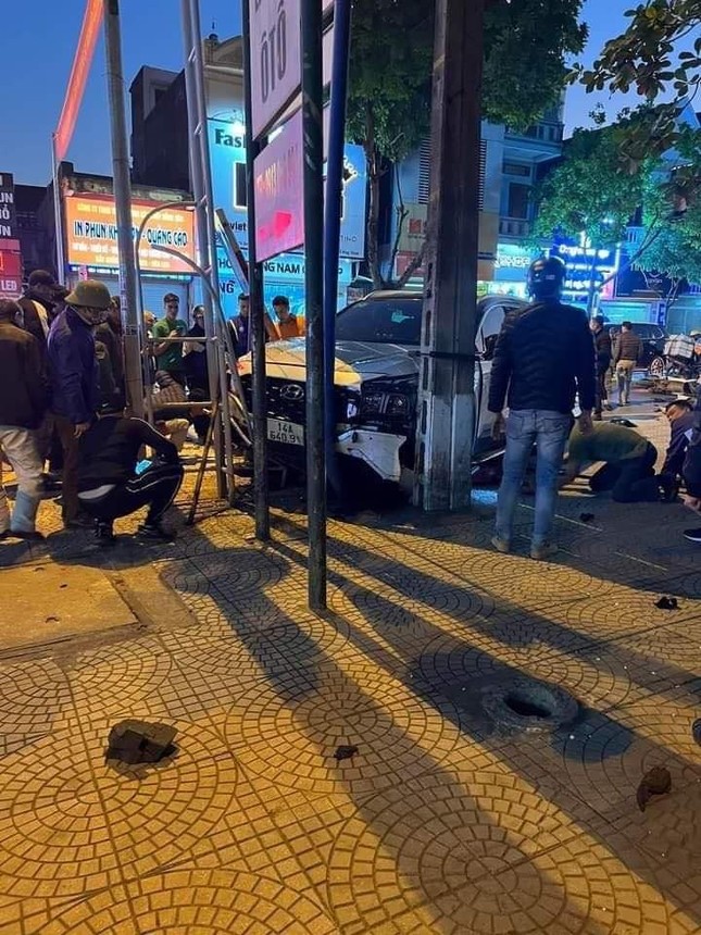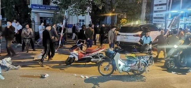Chiếc ô tô bị hư hỏng nặng phần đầu xe. Các xe máy, xe đạp điện và xe đạp hư hỏng nặng. Sau khi gây tai nạn, tài xế đã rời khỏi hiện trường.