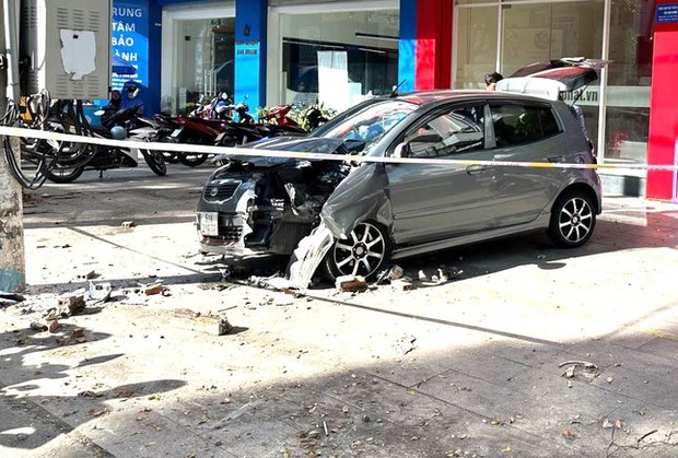 Trưa 25/11, chiếc xe ô tô mang biển số Bình Dương lưu thông trên đường 30/4. Khi xe di chuyển đến đoạn thuộc phường Phú Hòa, TP Thủ Dầu Một thì bất ngờ mất lái lao lên vỉa hè, tông vào cột điện.