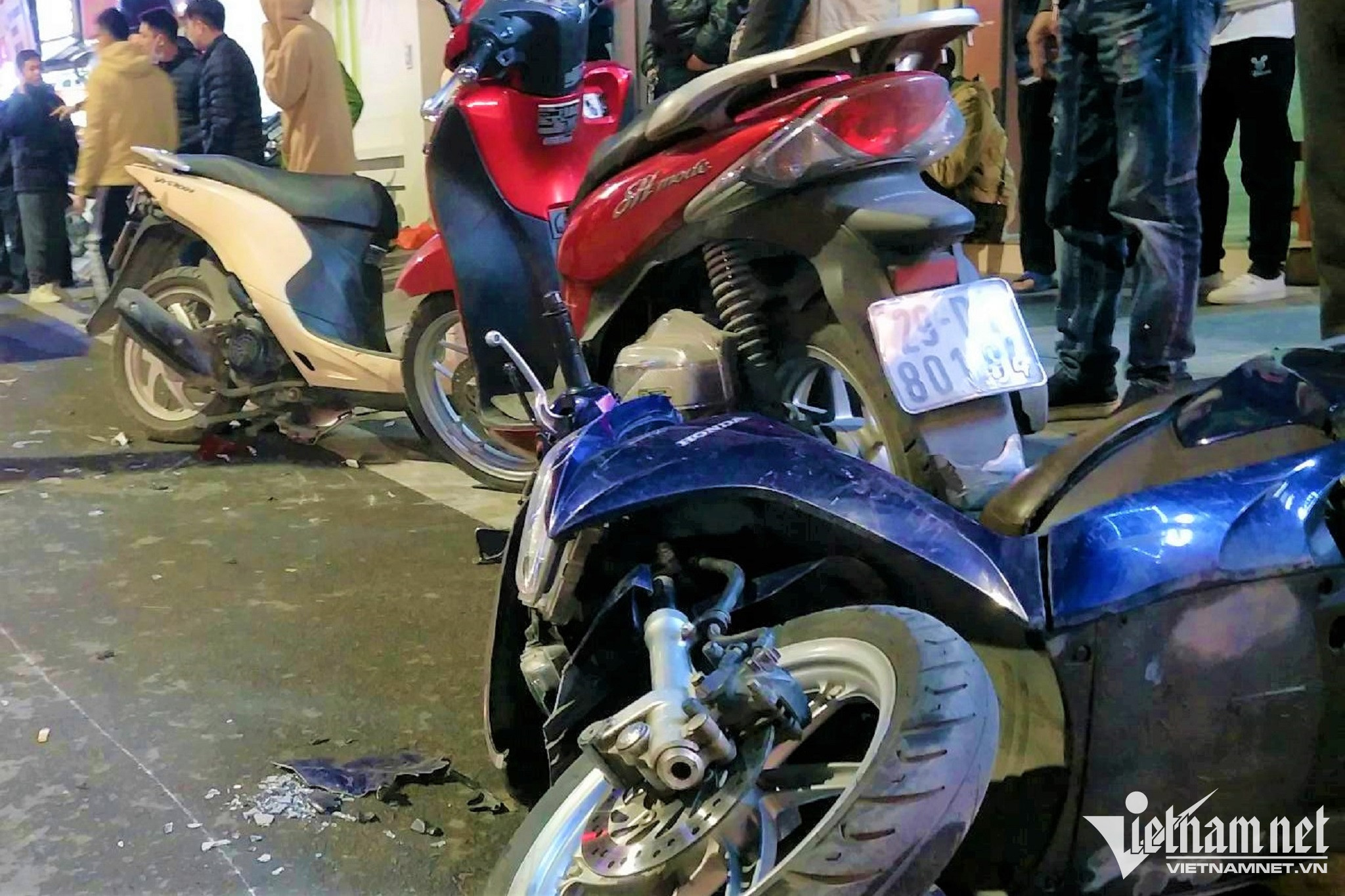 Tại hiện trường, nhiều xe máy nằm la liệt ở đường, đã có một người bị thương nặng được đưa đi cấp cứu, còn lại các nạn nhân chỉ bị thương nhẹ.