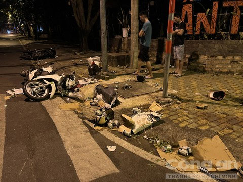 Cú tông mạnh đã hất 5 người và 2 chiếc xe máy văng về trước làm các nạn nhân 5 bất động. Hai xe máy bị hất văng vào lề.