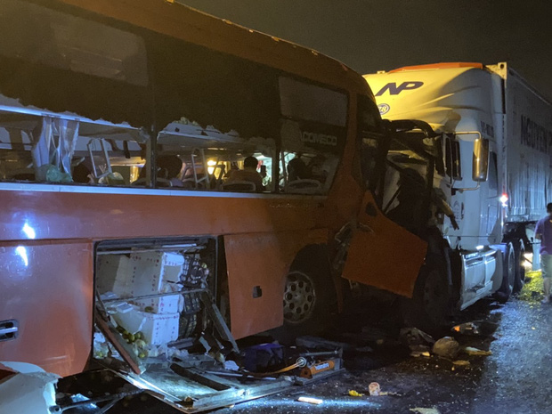Vụ va chạm kinh hoàng khiến 2 người trên xe khách chết tại chỗ, khoảng 20 người bị thương đã được đưa đi cấp cứu.
