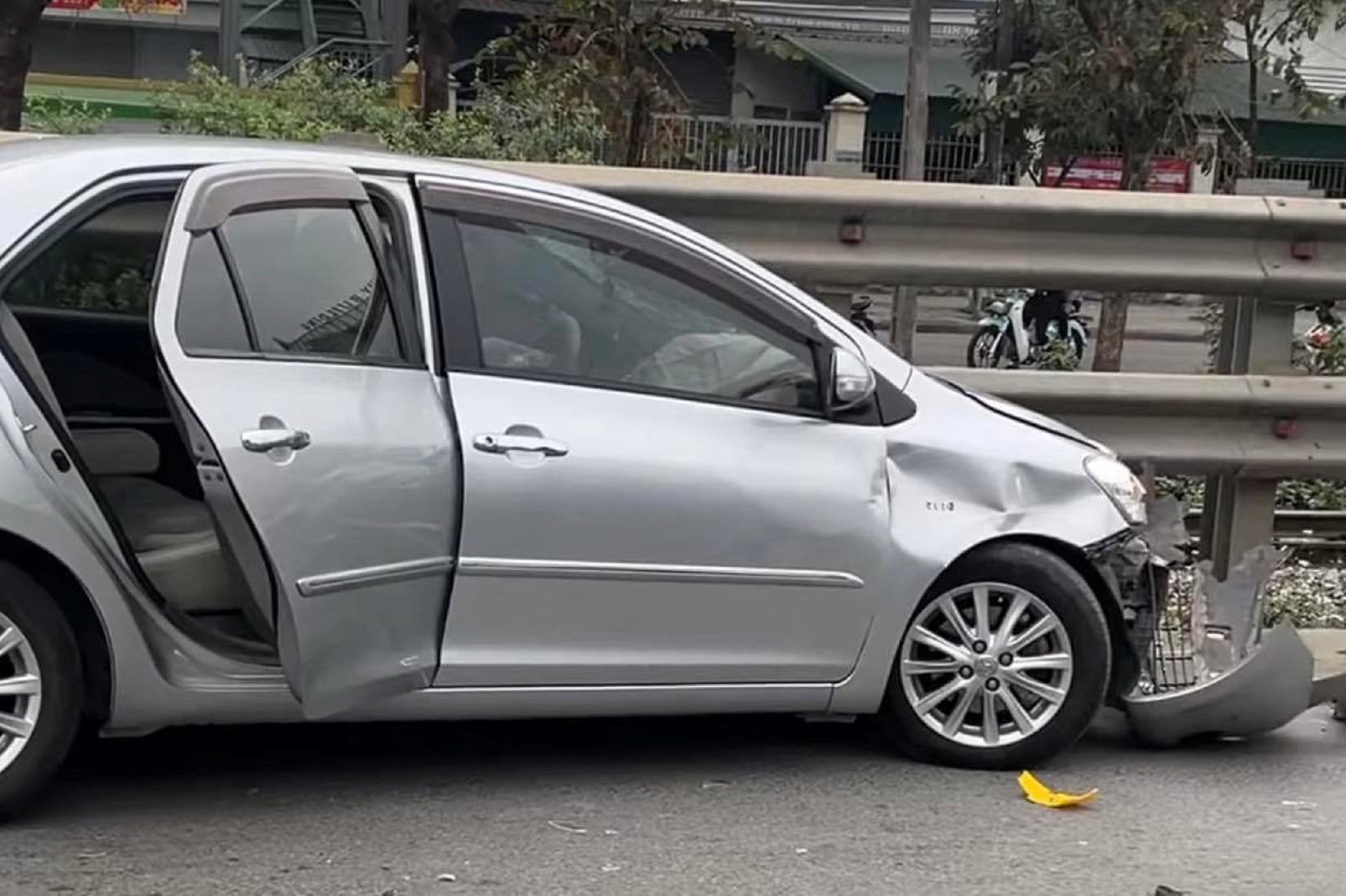 Ô tô con đã tông trúng 7 xe máy trước khi đâm vào hộ lan bên đường và dừng lại.