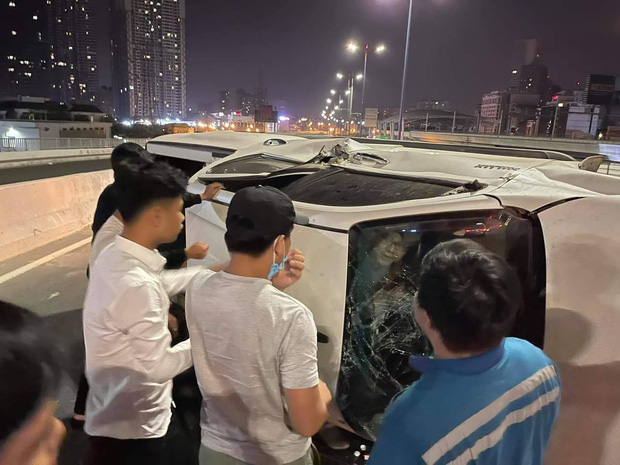 May mắn thời điểm chiếc xe xảy ra vụ việc không có phương tiện nào lưu thông gần đó. Người dân vội đưa tài xế cùng 1 hành khách bị thương ra khỏi xe và chuyển cấp cứu. Hiện trường, chiếc xe ô tô lật ngang trên làn đường, kính bể văng tung toé. Vụ việc khiến cho giao thông qua khu vực ùn ứ.