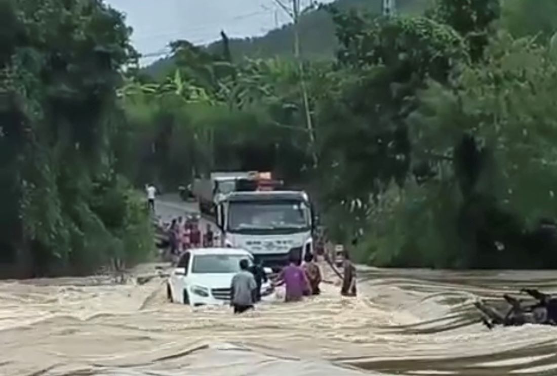 Đến khu vực trên, dù trời mưa nhưng anh Tâm thấy nước chảy nhẹ, lại vội việc gia đình nên cố băng qua. Tuy nhiên đến giữa cầu, một lượng nước lớn đổ về, chảy xiết làm ô tô chết máy.