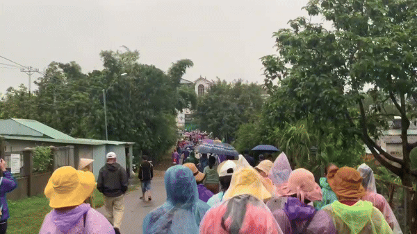 Trong đoạn clip đang lan truyền cho thấy, trên con đường dẫn vào nơi ông Thích Minh Tuệ khất thực có hàng chục xe ô tô nối dài, đỗ ngay ngắn. Mặc dù trời có mưa song đông đảo người dân vẫn mặc áo mưa xếp hàng bên đường chờ xem ông Thích Minh Tuệ khất thực.