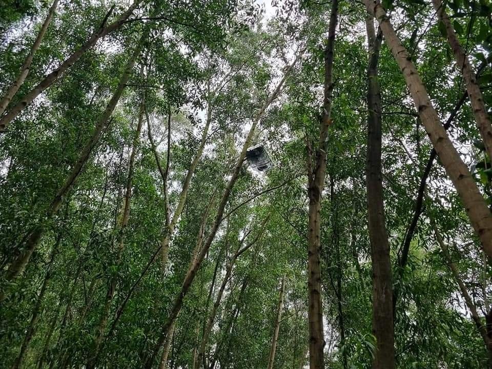 Khi người dân có mặt tại hiện trường, chiếc xe đã bị bốc cháy với cột khói cao, nóc xe vương trên ngọn cây, nam tài xế trong xe bị bỏng nặng.