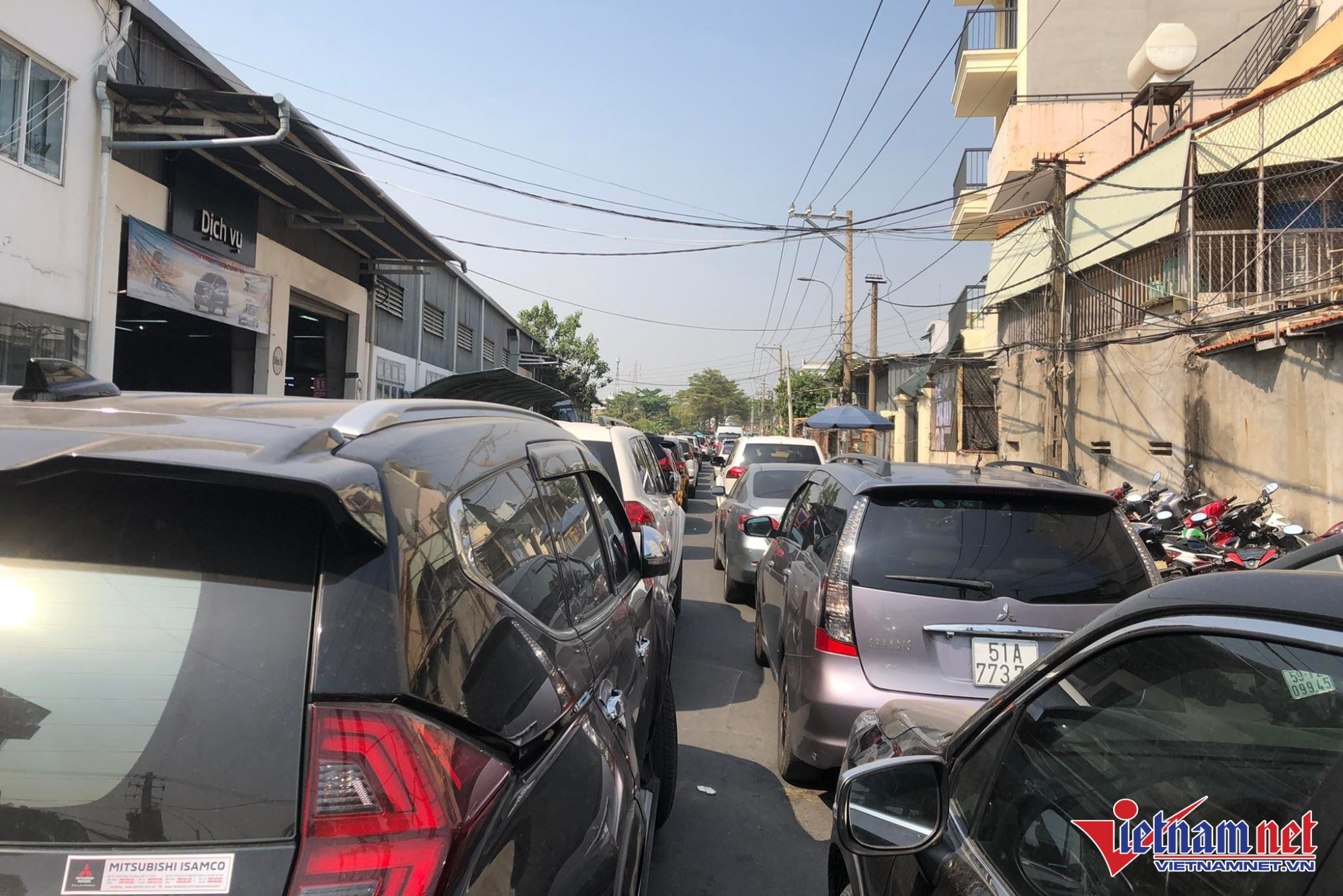 Ngay từ sáng sớm, hàng trăm phương tiện nối đuôi nhau xếp hàng chờ trước cổng ra vào của Trung tâm Đăng kiểm xe cơ giới 50-03S (thuộc TP Thủ Đức, TP.HCM). Do lưu lượng đổ về quá đông nên nhanh chóng dồn ứ, rồng rắn nối đuôi nhau trên quốc lộ 13.
