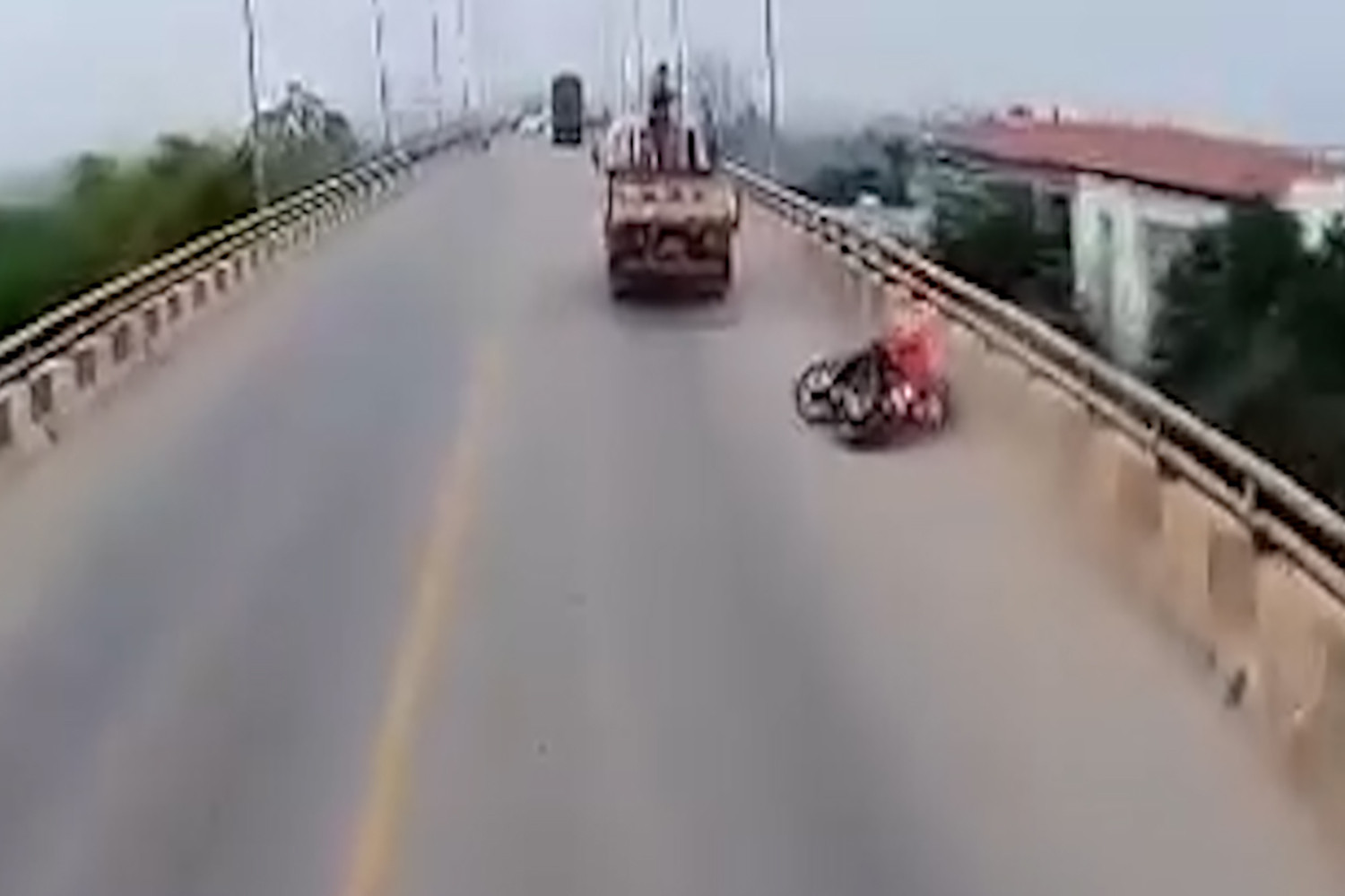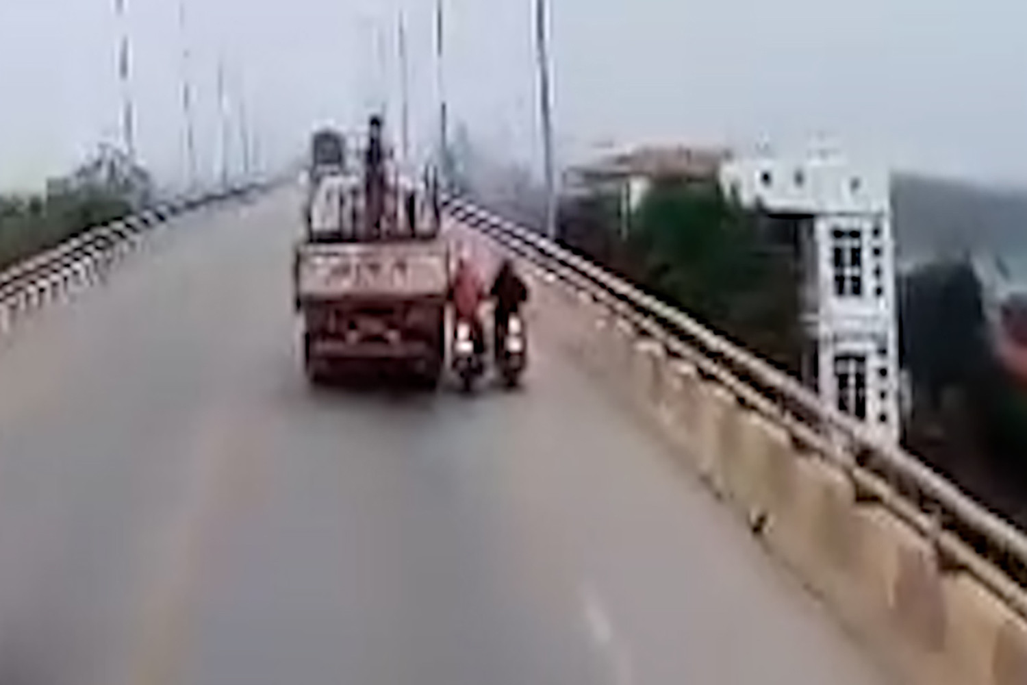 Ngày 4/1, một đoạn clip dài 30 giây ghi lại cảnh tài xế xe tải va ngã 2 người đi xe máy trên cầu Ngọc Tháp (tỉnh Phú Thọ) rồi bỏ đi, được chia sẻ trên mạng xã hội.