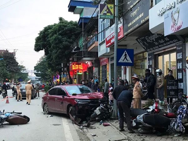 Sau va chạm, ông T bị hất văng lên không trung, lộn nhiều vòng trước khi tiếp đất. Sau đó, ô tô tiếp tục đâm hàng loạt phương tiện đang dừng đỗ trên vỉa hè. Hình ảnh tại hiện trường cho thấy nhiều xe máy vỡ nát, ôtô Honda City nát đầu, bay biển số.