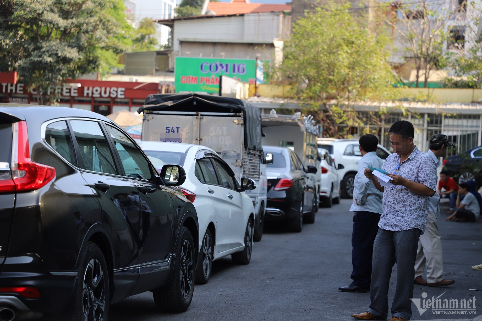 Ghi nhận sáng 24/4 tại trung tâm đăng kiểm 50-05V chi nhánh Hồng Hà (quận Tân Bình), hàng chục chiếc xe lớn nhỏ nằm chật ních trong sân. Phía ngoài đường Hồng Hà, hàng xe nối dài, nhích từng chút một dưới cái nắng gay gắt.