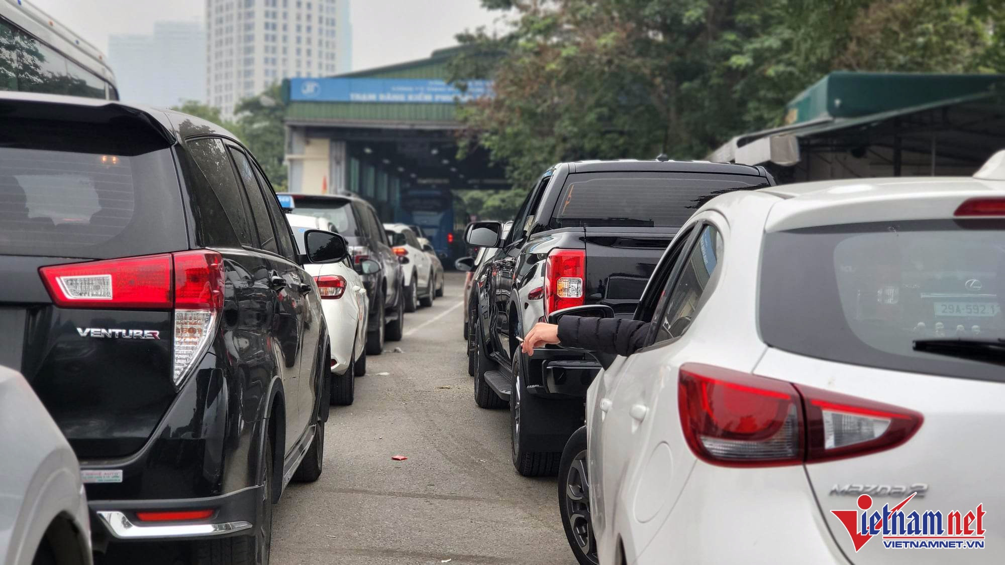 27/12/2022 14:43Ô tô xếp hàng dài chờ đến lượt đăng kiểm ở Hà Nội