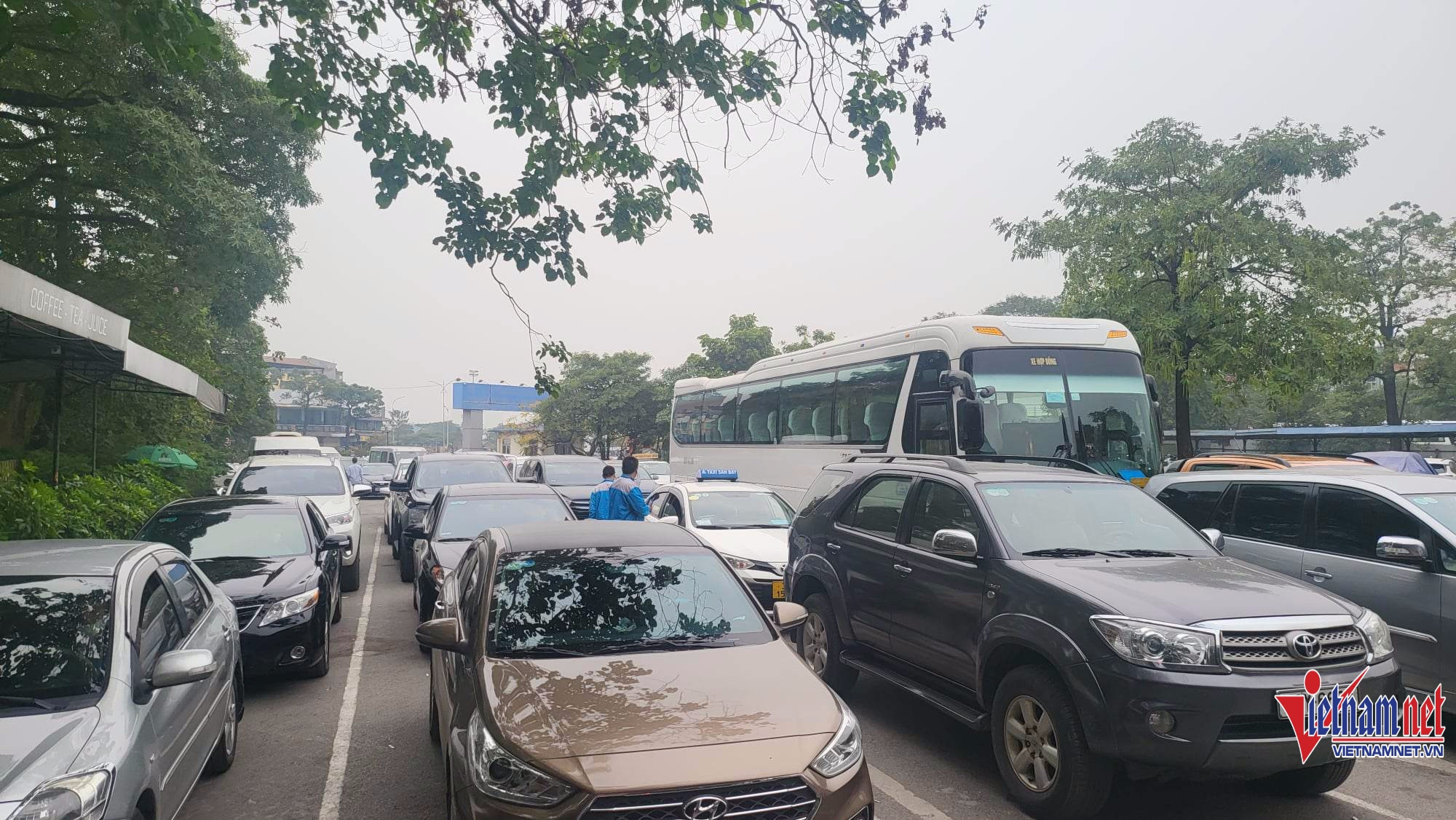 Tại đây, ô tô phải xếp hàng ba, hàng tư kéo dài từ trong trung tâm tới ngoài đường Lê Quang Đạo.