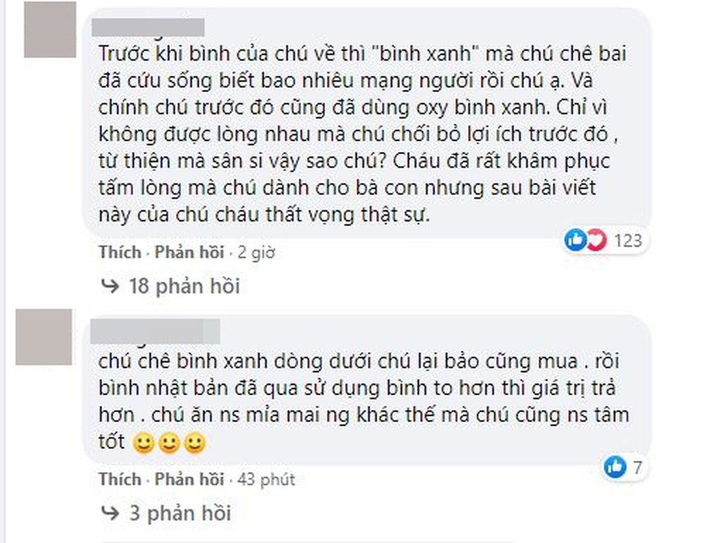 Không rõ sự thật "oxy bình xanh" ông Hải muốn nhắc đến trong phát ngôn của mình là gì, nhưng nó vẫn tạo ra tranh cãi nảy lửa ngay ở trang cá nhân của ông.