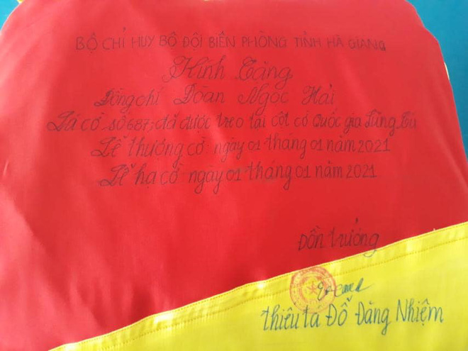 Điều đặc biệt ở lá cờ này là lãnh đạo quân đội ghi tặng đích danh tên ông Đoàn Ngọc Hải và đóng dấu lên lá cờ thiêng liêng của Tổ quốc. Lá cờ được thượng cờ và hạ cờ vào ngày đầu năm mới 1/1/2021.
