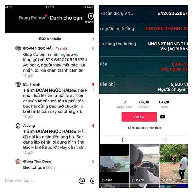 Mới đây, trên mạng xã hội Instagram xuất hiện tài khoản mang tên "ĐOÀN NGỌC HẢI", người này đã đăng tải bài viết, kèm theo số tài khoản người nhận tiền có tên "NGUYEN THANH LONG" mở tại ngân hàng Nông nghiệp và phát triển nông thôn (Agribank) để kêu gọi mọi người gởi tiền ủng hộ người nghèo.