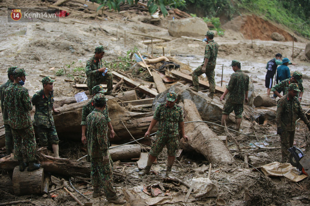 Chiều tối 30/10, dù trời có mưa phùn, tuy nhiên công tác tìm kiếm thi thể những người mất tích vẫn được triển khai hết sức khẩn trương. Càng gần hiện trường, tiếng hô hào của lực lượng chức năng đang tìm kiếm những người bị nạn ngày một rõ hơn. Cạnh đó, rất đông người thân của các nạn nhân đang ngồi trông ngóng, theo dõi việc tìm kiếm.