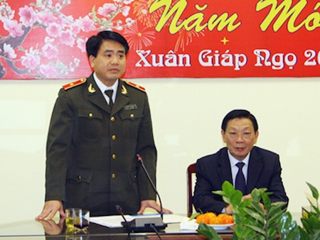 Chủ tịch UBND TP Hà Nội Nguyễn Thế Thảo đến chúc Tết Giáp Ngọ 2014 tại Công an TP Hà Nội - Ảnh: ANTĐ