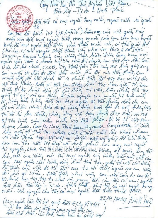 27/11/2024 04:15Ông Thích Minh Tuệ ra thông báo muốn đi bộ đến Ấn Độ, có dấu mộc công ty