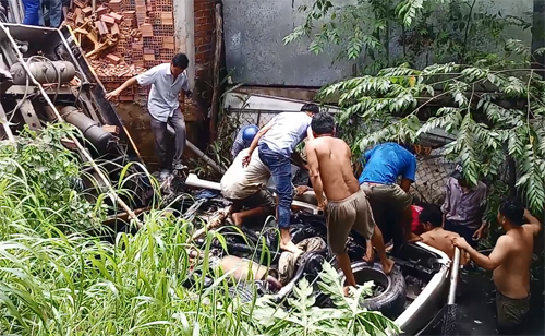 Tài xế xe cẩu bị thương nhưng đã cố thoát ra ngoài và rời khỏi hiện trường. Riêng ôtô nằm dưới kênh khoảng một mét nước, móp méo. Người dân đã tìm mọi cách giải cứu những người kẹt trong xe nhưng gặp nhiều khó khăn.