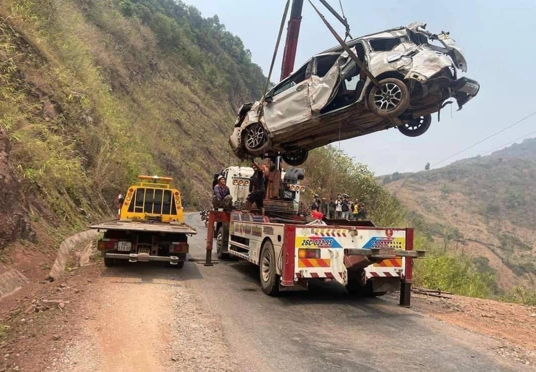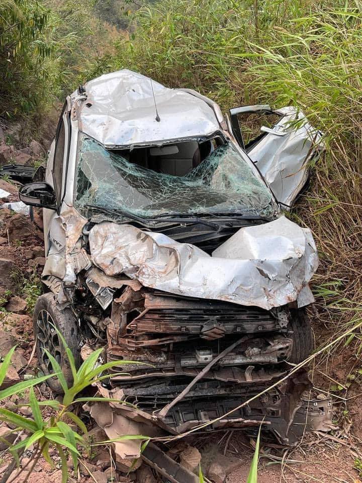 "Khi chiếc xe đi tới đỉnh dốc Đề Bua, xã Phìn Hồ, huyện Nậm Pồ thì bất ngờ bị lao xuống vực sâu khoảng 60m. Chiếc xe bẹp rúm, tuy nhiên cả 5 người trong ô tô đều may mắn không bị sao, họ tự chui ra khỏi xe và gọi lực lượng chức năng và xe cứu hộ tới", vị chỉ huy Đội Cảnh sát giao thông - Trật tự, Công an huyện Nậm Pồ (Điện Biên) thông tin.