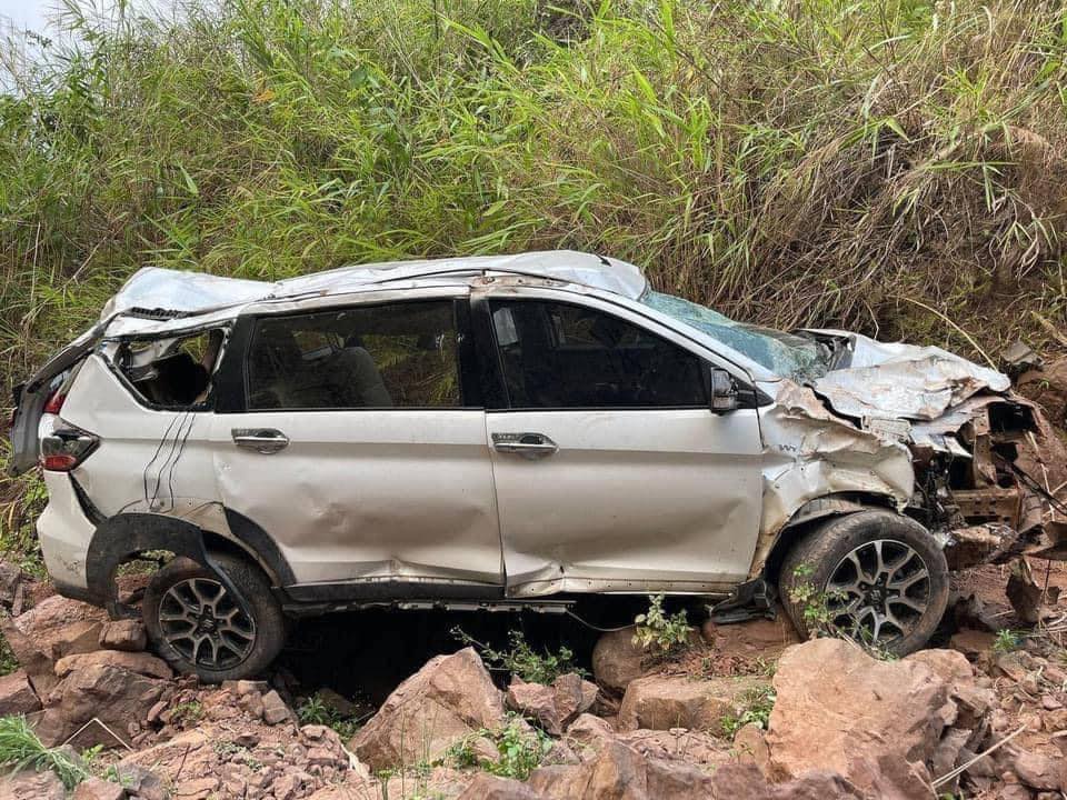 Sáng 5/5, trên mạng xã hội xuất hiện hình ảnh kèm thông tin về một chiếc ô tô chở 5 người, đi qua một đoạn đèo sâu ở Điện Biên rồi rơi xuống vực. Ô tô bị bẹp rúm, may mắn cả 5 người trong xe đều may mắn không ai bị thương.