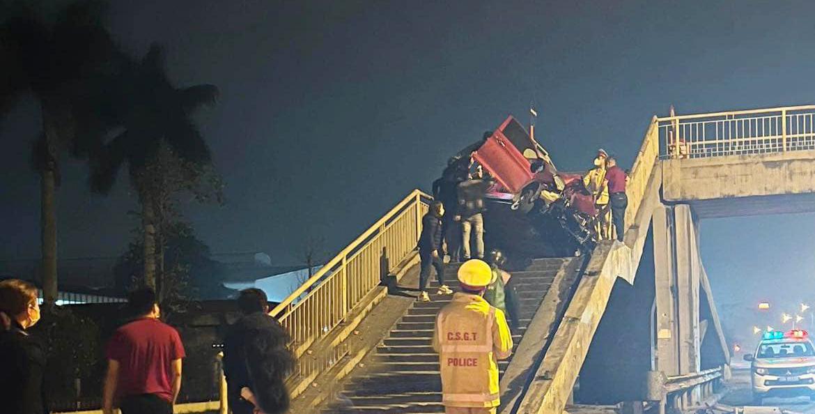 06/03/2022 21:51Ôtô mất lái lao lên cầu vượt dành cho người đi bộ, một người chết
