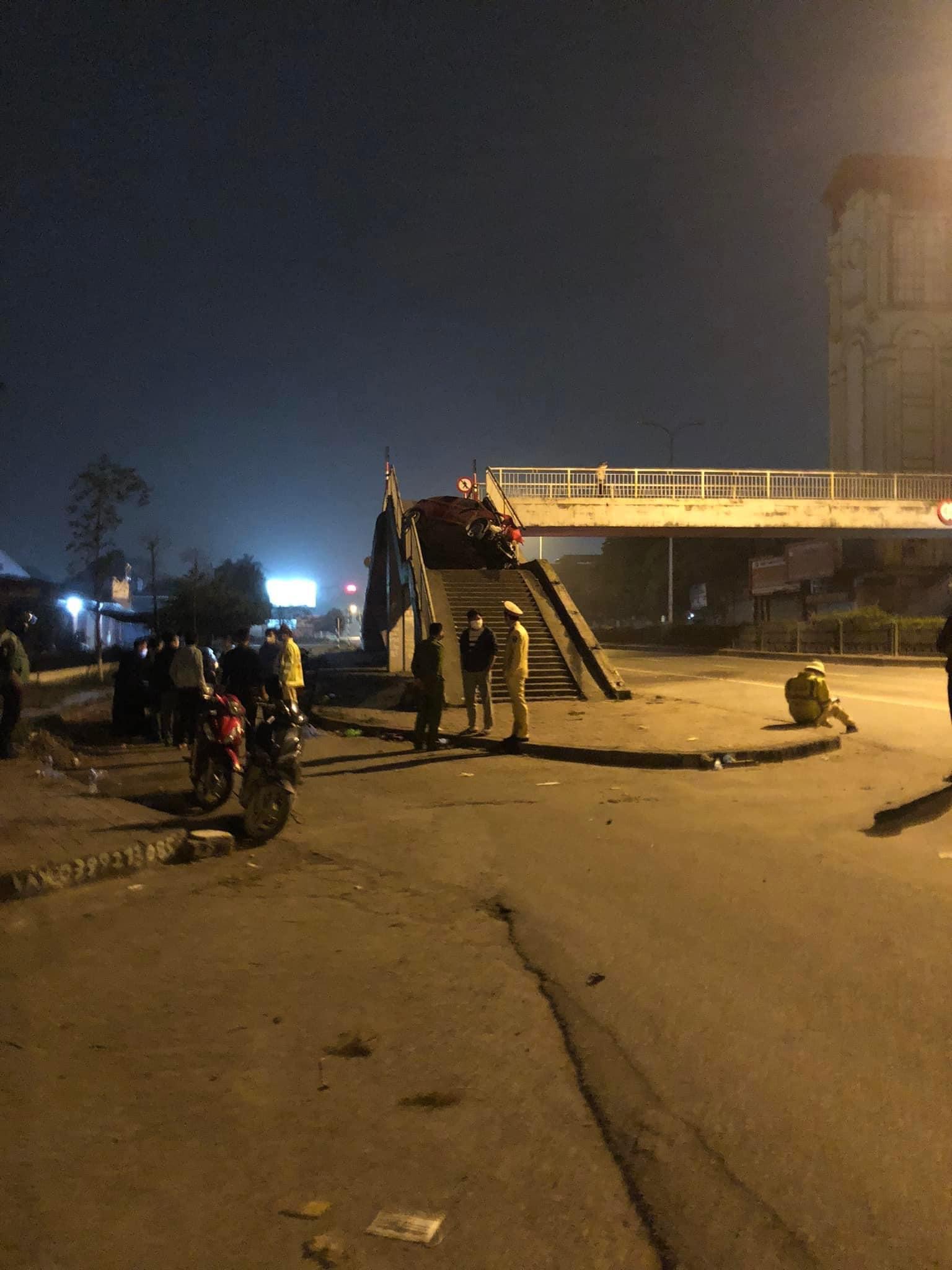 Theo Chi cục quản lý đường bộ I.6, vụ việc khiến một người tử vong và 2 người bị thương được đưa đi cấp cứu. Hình ảnh từ hiện trường cho thấy đầu xe biến dạng. Tại vị trí dưới chân lên cầu vượt đi bộ có vỉa hè lát gạch cao 15 cm so mặt đường quốc lộ 5. Khoảng 12 m can cầu hư hỏng.