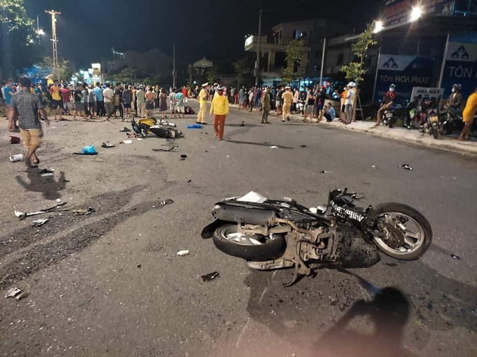 Tại hiện trường, đầu ôtô bị biến dạng, 3 chiếc xe máy bị hư hỏng nặng, mảnh vỡ rơi vãi khắp đường. Theo ghi nhận ban đầu, người điều khiển ôtô có biểu hiện say xỉn.