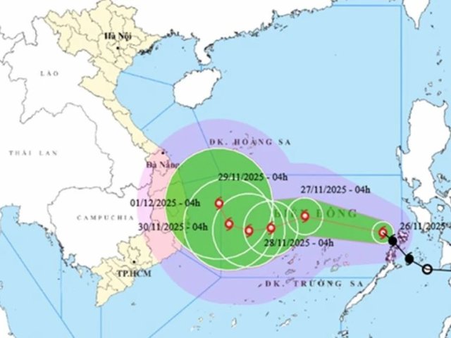 Bão số 15 tăng cấp nhanh trên Biển Đông, dự kiến đạt cấp 11 giật cấp 14 vào ngày 28/11