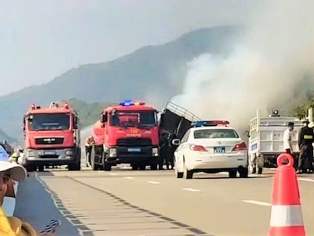Trang 2Xe tải bốc cháy ngùn ngụt trên cao tốc Cam Lâm – Vĩnh Hảo, giao thông tê liệt nhiều giờ