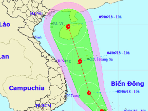 Sáng nay (2/6), vùng áp thấp trên khu vực quần đảo Trường Sa đã mạnh lên thành áp thấp nhiệt đới. Dự báo trong 24 giờ tới, áp thấp nhiệt đới di chuyển theo hướng Tây Bắc, mỗi giờ đi được 10-15km và có khả năng mạnh thêm.