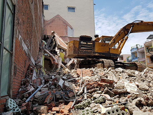 Nhóm công nhân đang tháo dỡ căn nhà 2 tầng ở góc giao lộ số 26 và Trần Văn Kiểu, quận 6, TP.HCM thì bất ngờ công trình đổ sập khiến 3 người bị bê tông vùi lấp. Một người tử vong tại chỗ, 2 người bị thương nhập viện cấp cứu.