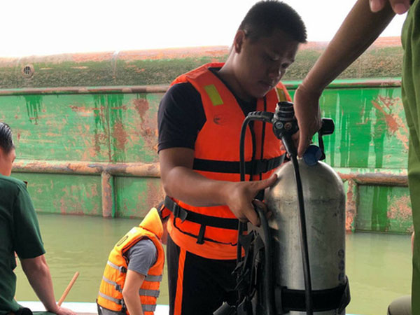 Sau khi xảy ra sự cố, sà lan chở hàng chục tấn cát bị dòng nước nhấn chìm, 2 người may mắn bơi được vào bờ, 3 người còn lại đang mất tích.