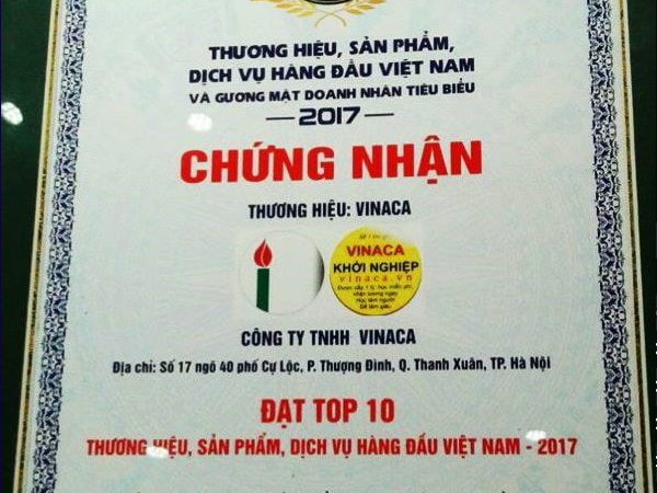 Phía đơn vị tổ chức chương trình "Đánh giá và truyền thông Thương hiệu, sản phẩm, dịch vụ hàng đầu Việt Nam và Gương mặt doanh nhân tiêu biểu năm 2017" xác nhận đã thu hồi chứng nhận Vinaca đạt Top 10 Thương hiệu hàng đầu Việt Nam năm 2017.