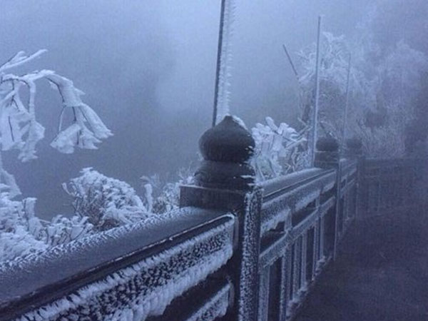 Nằm trọn trong khối khí lạnh khô, Sa Pa tiếp tục giảm nhiệt độ, tại đỉnh Fansipan tiếp tục xuống quanh mức 0 độ.