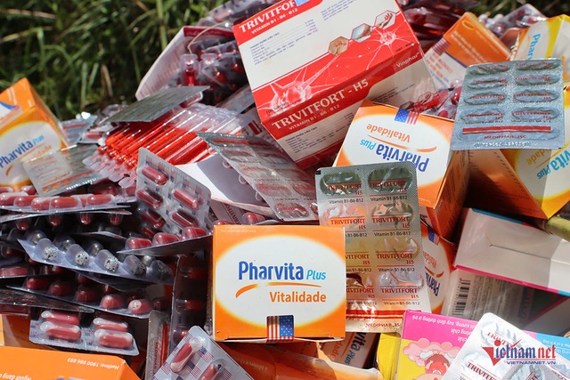 Hàng trăm vỉ thuốc bị vứt ngổn ngang bên đường, phủ sơ sài bằng bạt đen