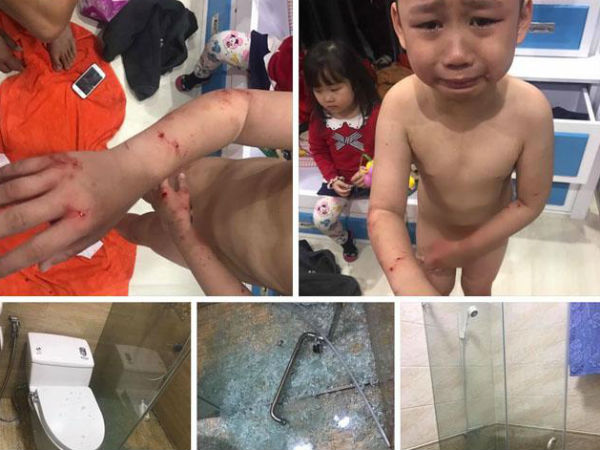 “Con mình vừa bước vào trong, chưa kịp xả nước, kính cường lực nhà tắm bỗng dưng nổ tung, những mảnh kính vỡ vụn làm cháu bị thương” – chị Hoa cho biết.