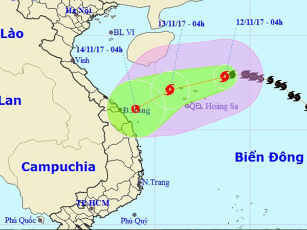 Di chuyển chậm trên Biển Đông, bão số 13 có thể suy yếu thành áp thấp trên khu vực duyên hải từ Quảng Trị đến Quảng Ngãi.