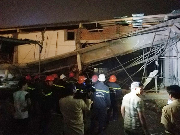 Một công trình siêu thị đang được xây dựng thì bất ngờ đổ sập khiến ít nhất 4 công nhân bị thương ở thị trấn Phú Mỹ, huyện Tân Thành, tỉnh Bà Rịa - Vũng Tàu vào tối 30/10.