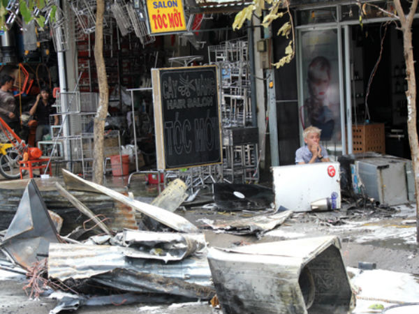 Lửa xuất phát từ cửa hàng sửa chữa điện lạnh ở quận 7, lan sang salon tóc và tiệm sửa đồ điện tử khiến nhiều đồ đạc bị thiêu rụi.