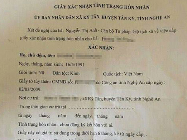 Giấy xác nhận tình trạng hôn nhân xuất hiện với nội dung người vợ 26 tuổi còn người chồng chỉ 8 tuổi đã khiến dư luận xôn xao và đặt nghi vấn về sự thật giấy xác nhận này.