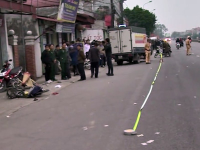 Người phụ nữ bán rau di chuyển đến ngã ba Ba La- Hà Đông bất ngờ va chạm với xe tải chạy cùng chiều.