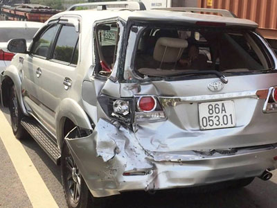 6 chiếc ô tô tông nhau liên hoàn trên đường dẫn cao tốc TP HCM - Long Thành - Dầu Giây (địa bàn quận 2, TP HCM).