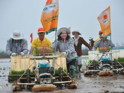 Sáng 12.2, Bí thư Tỉnh ủy Ninh Bình Nguyễn Thị Thanh đã lội ruộng, lái máy cấy trên cánh đồng thị trấn Bình Minh, huyện Kim Sơn (Ninh Bình), cầu mong mưa thuận, gió hòa, mùa màng tươi tốt.