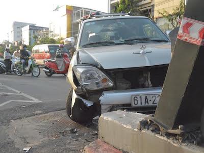 Chiếc xe ô tô 7 chỗ đang lưu thông trên đường bất ngờ tông hàng loạt xe máy, lao vào thành cầu vượt bằng thép rồi mới chịu dừng lại. Vụ việc khiến cho 3 người bị thương, giao thông qua khu vực tê liệt nhiều giờ.